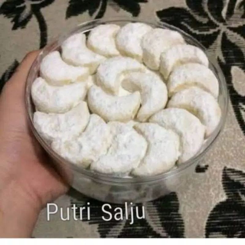 Putri Salju Lumer. Mentega margarin bisa mentega blue band atau Palmia 700 gram. Kue putri salju dibuat dari adonan tepung terigu tepung maizena mentega dan kuning telur yang dipanggang di dalam oven sampai matang dan di atasnya diselimuti dengan gula halus.