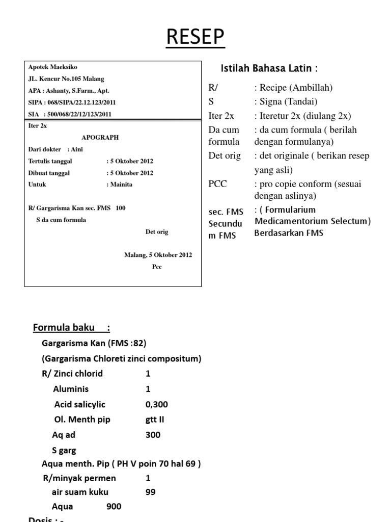 View Contoh resep emulsidocx from CS MISC at UET Taxila. LAPORAN PRAKTIKUM FARMASETIKA RESEP EMULSI. Salah satu contoh sediaan farmasi yang beredar di apotek instalasi kesehatan maupun toko obat adalah sediaan cair atau liquid dengan berbagai fungsi pembuatan.